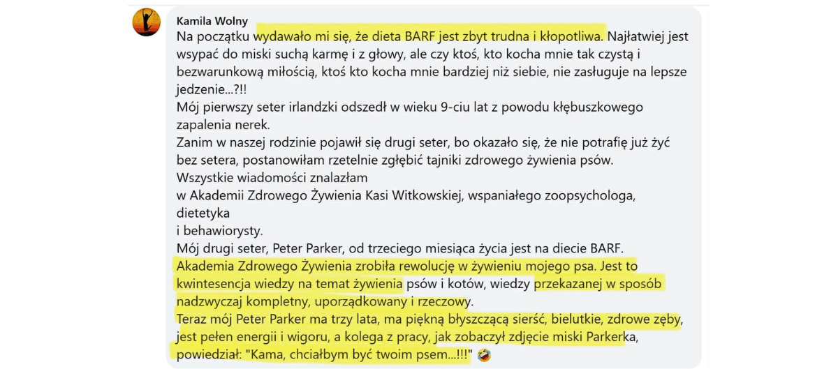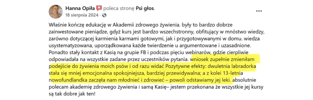 ✅ Chcesz sprawnie oceniać jakość karm, aby świadomie decydować, za co płacisz i wybierać wyłącznie te produkty, które realnie odżywiają organizm Twojego psa.